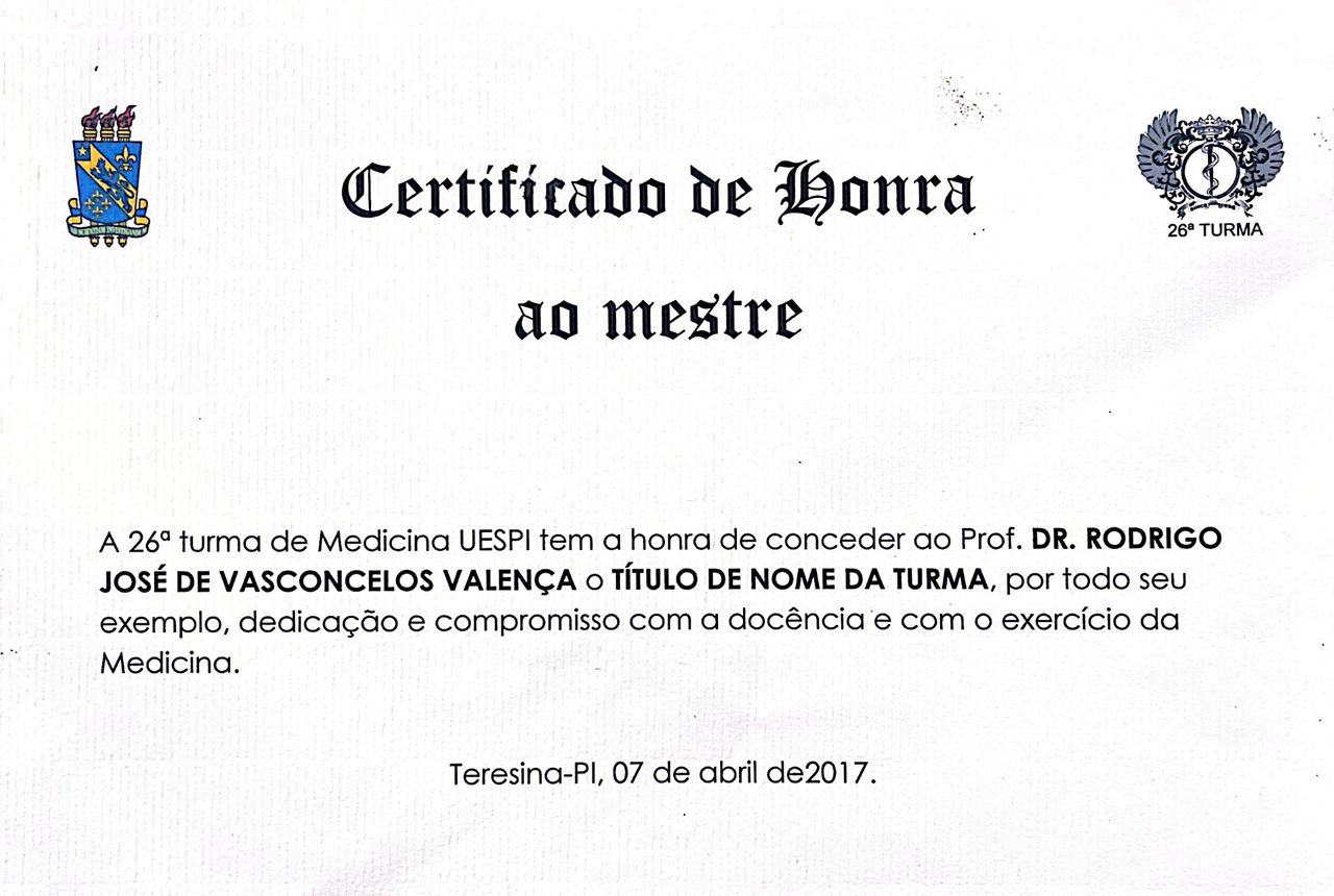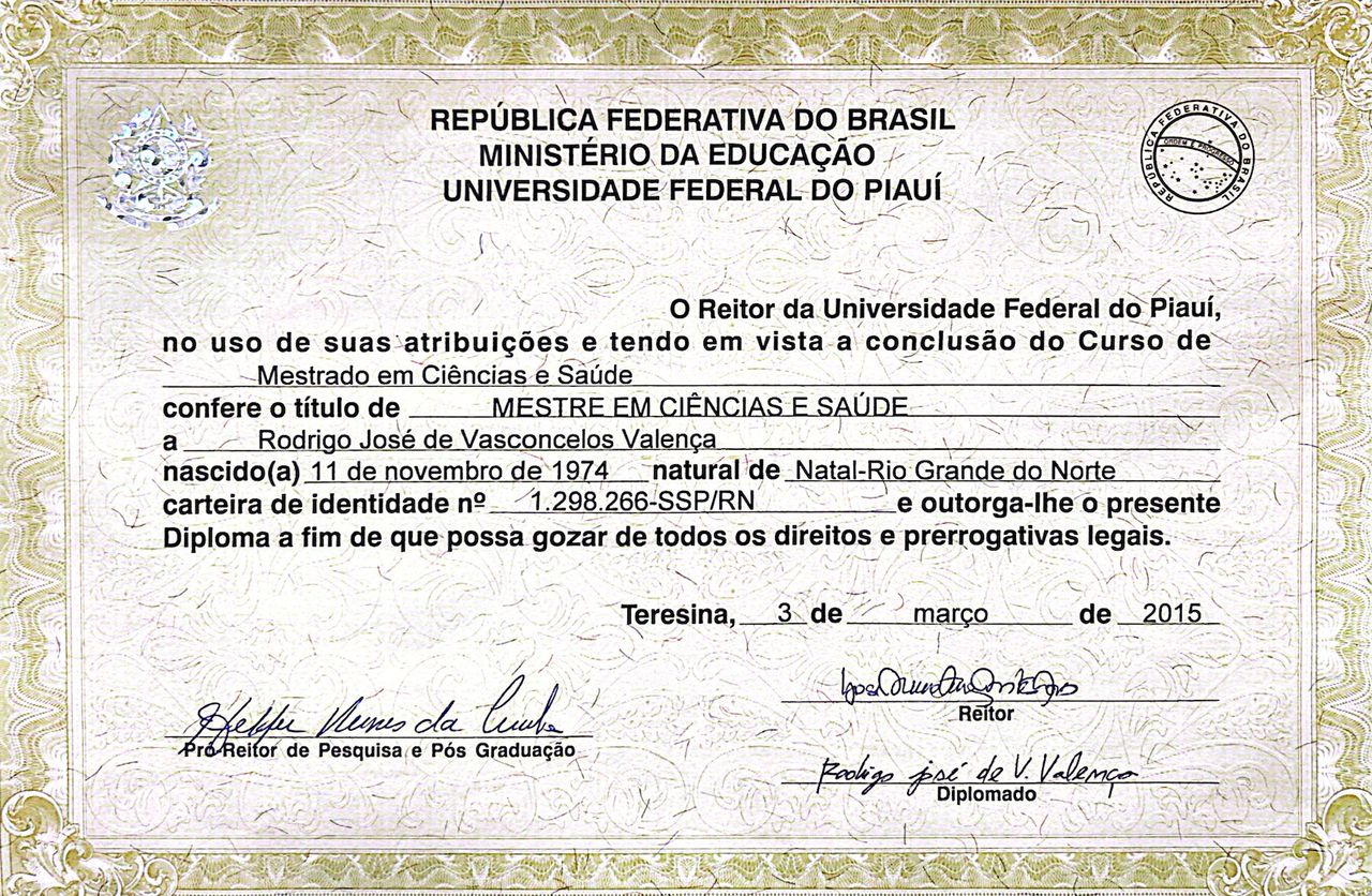 Possuo Título de Especialista em Oncologia Clínica pela Sociedade Brasileira de Oncologia Clínica (AMB) e Título de Especialista em Acupuntura pelo Colégio Médico Brasileiro de Acupuntura (AMB). Tenho Pós-graduação em Saúde Integrativa pelo Hospital Israelita Albert Einstein, sou Mestre em Ciências da Saúde, Professor efetivo e Coordenado o Curso de Medicina da UESPI.